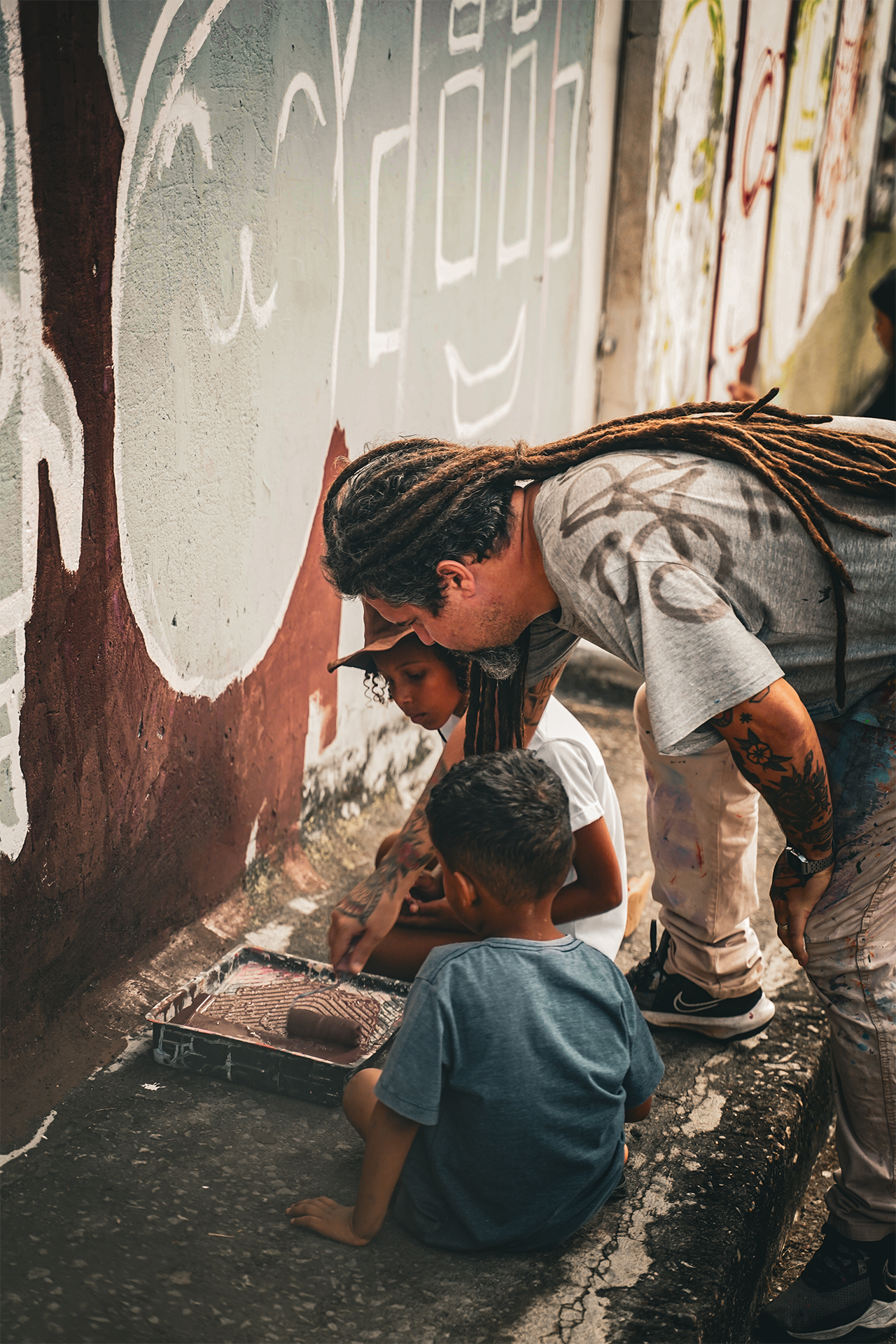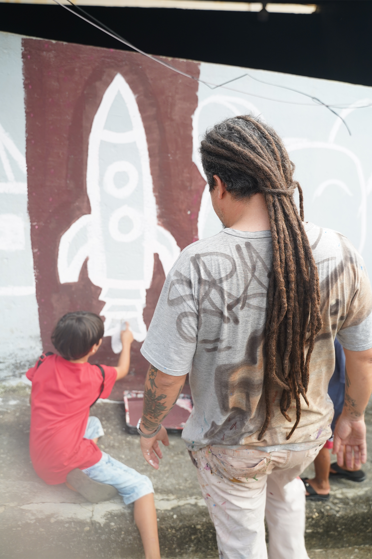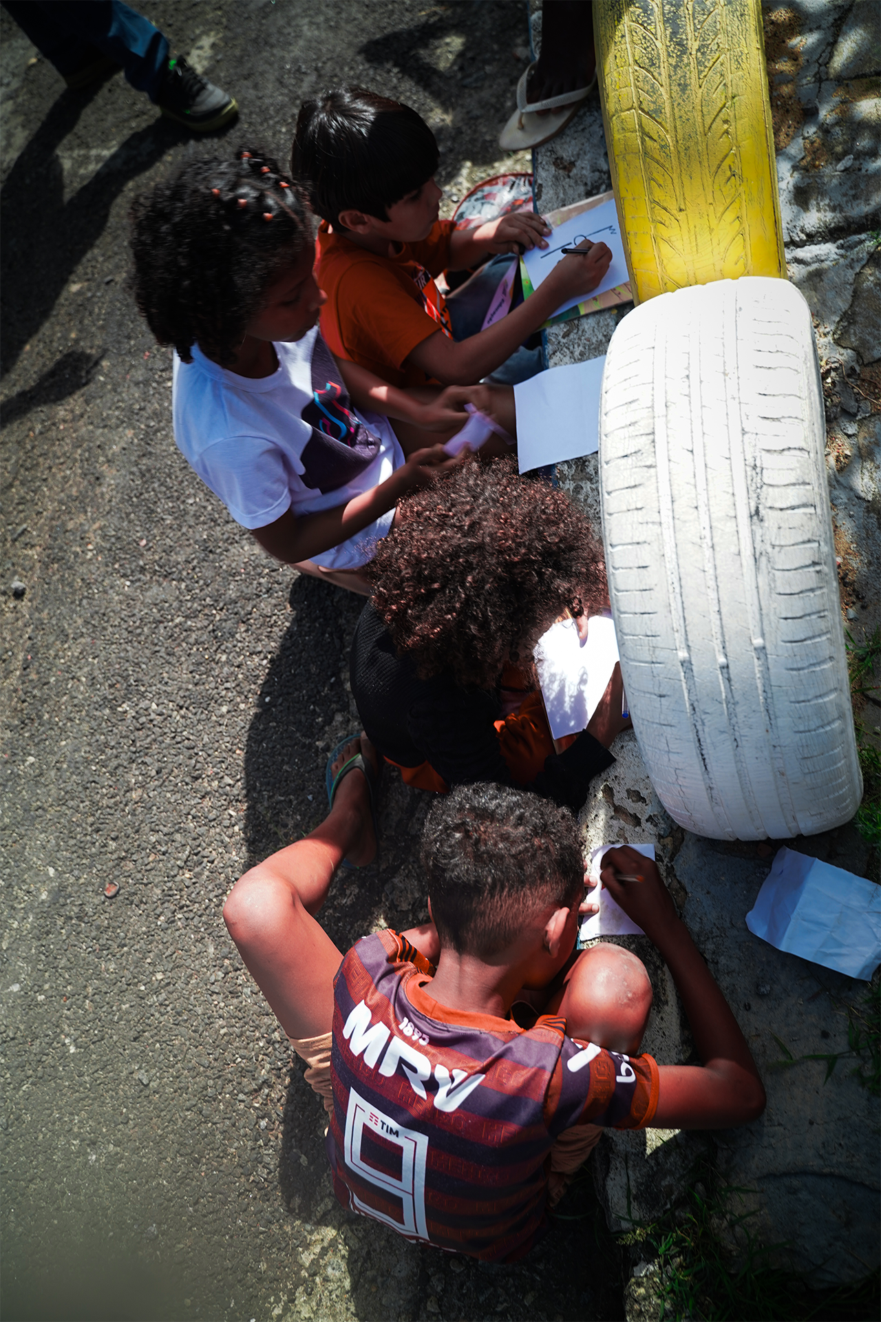 Nosso coletivo acredita em ações pedagógicas em diversas faixas etárias, estimulando a expressão própria, o fazer artístico e o diálogo sobre cultura própria e território.