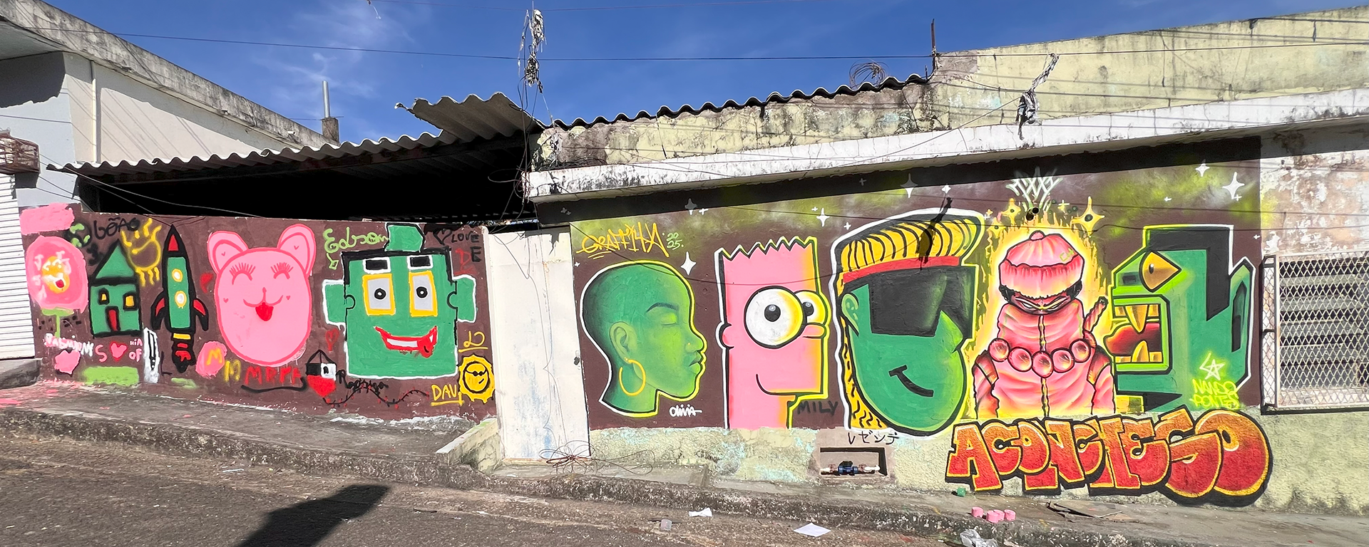 Oficina de Arte Urbana ministrada pelo artista Nando Pontes na Associação Beneficente Aconchego, na Comunidade do Horto, em Itaperuna/RJ. Atividade de aproximadamente 8 horas, direcionado às crianças do bairro, a atividade foi um estímulo para primeiro contato delas com a arte urbana. Foi uma abordagem sobre fundamentos do graffiti, tais como ampliação do desenho para parede, esboço, uso de tinta acrílica e spray.